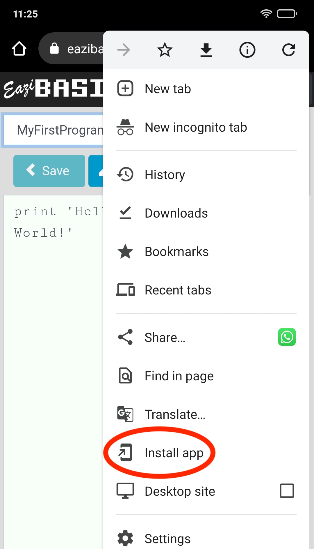 Once you've accessed the app at eazibasic.app you can install it on your device as follows:
